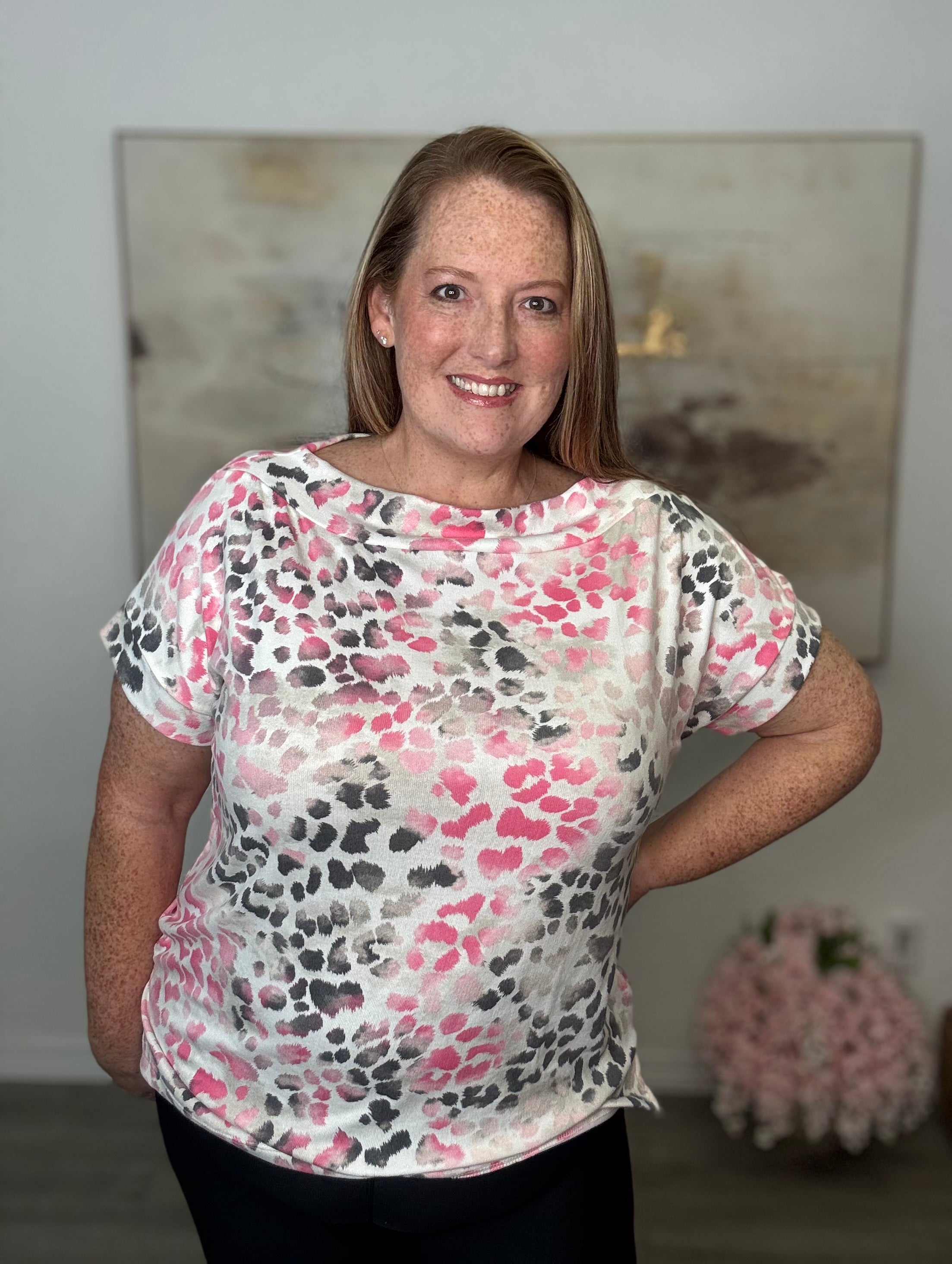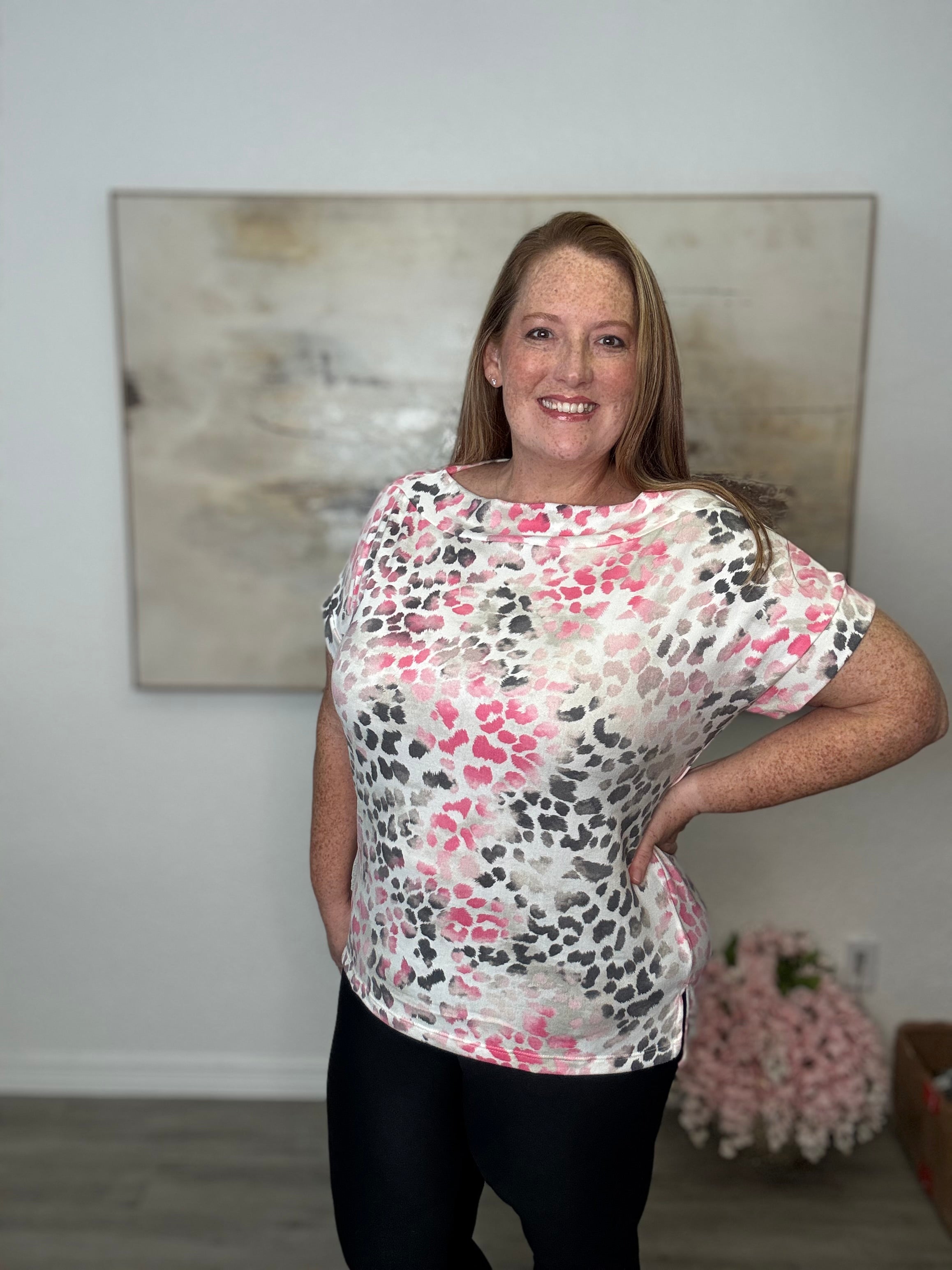 The Pink Leopard Print Knit Top