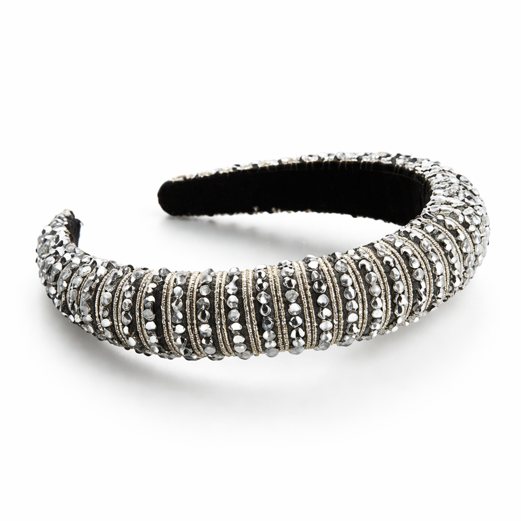 Bling Bling Glass Beaded Hairband, Wide Edge Headwear
