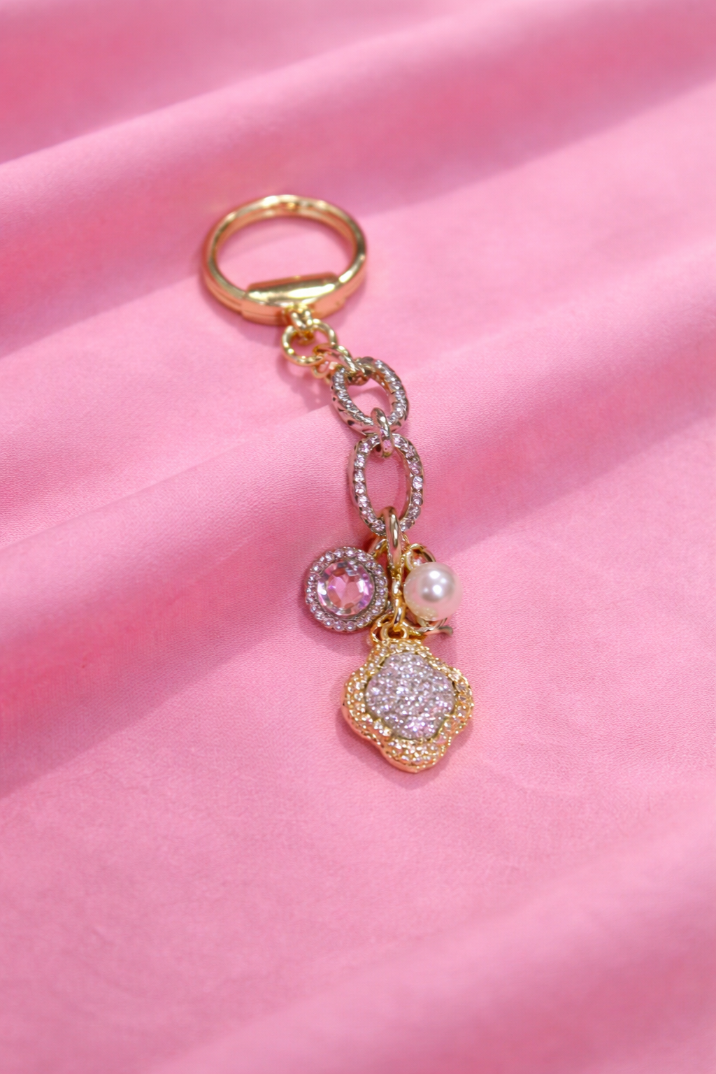 Quatrefoil Rhinestone Two-Tone Keychain & Bag Charm