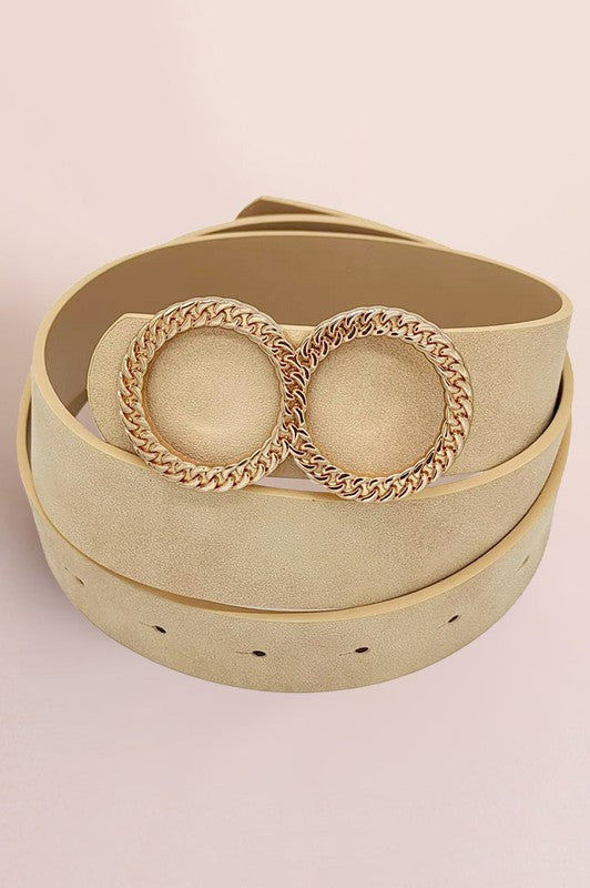 Textured Metal Double O Buckle Accented Faux Leather Belt