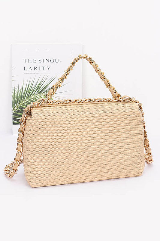 Whether you're heading to brunch with friends, running errands, or enjoying an evening out, this faux straw flap bag brings effortless elegance to every moment. The textured faux straw exterior paired with gleaming metal accents creates a luxe look that complements any wardrobe.