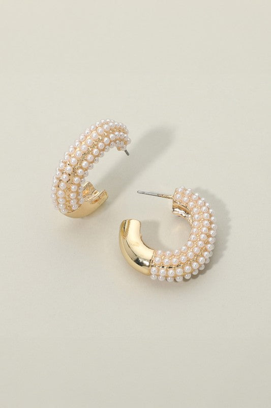 Chunky Pearl Beaded Hoop Earrings