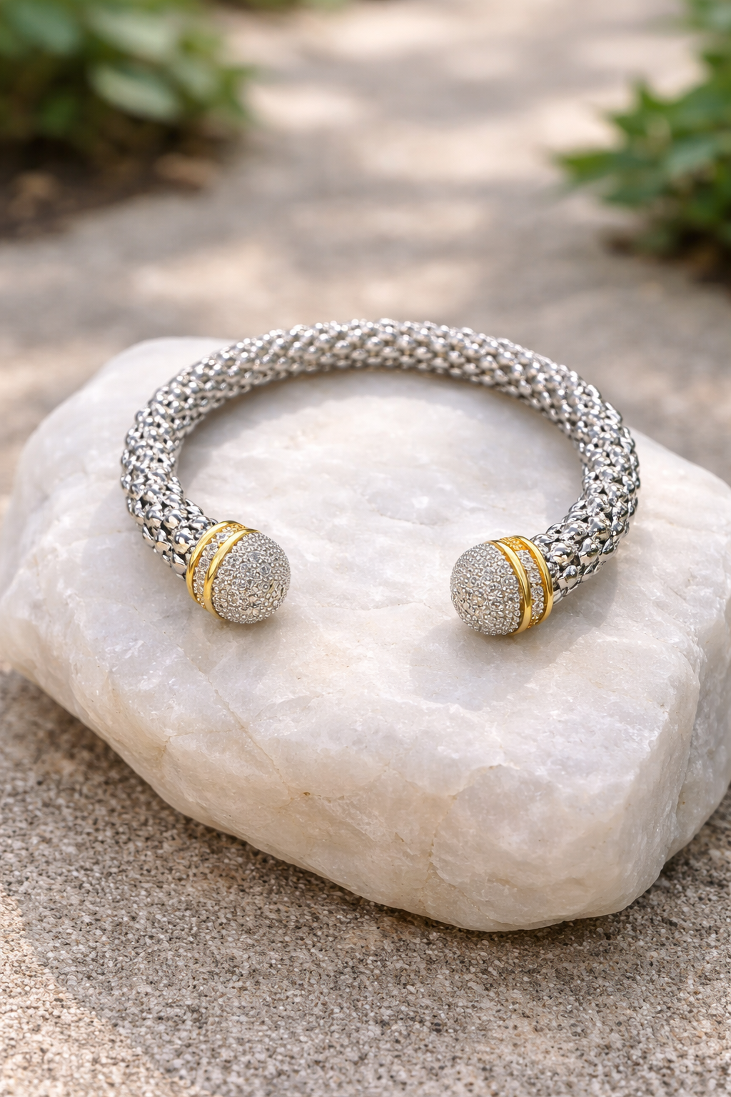 Braided Rhodium Plated Rhinestone Cuff Bracelet