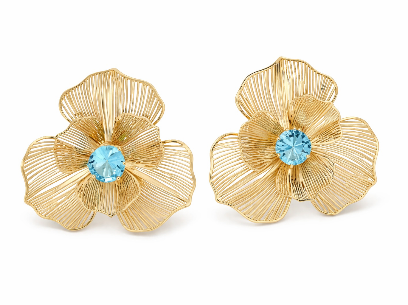 The Blue Flower Pave Cubic Zirconia Stud Earrings