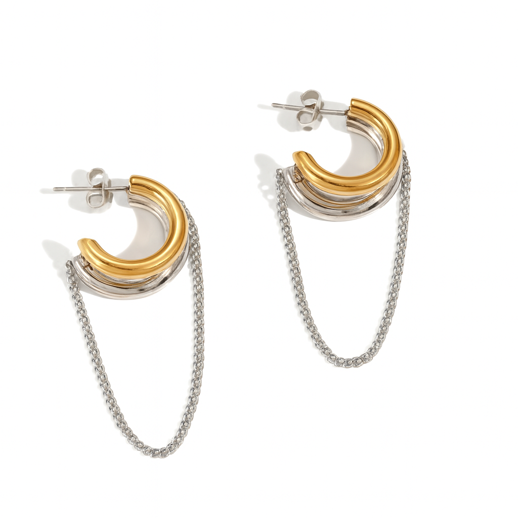 The Two Toned Hoop Chain Earrings