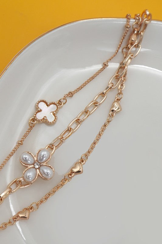 Ceramic Porcelain Heart Bow Pearl Charm Bracelet