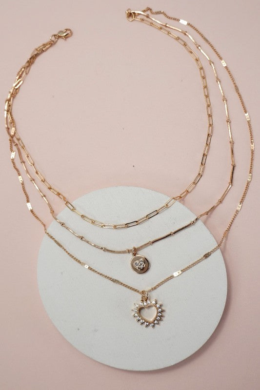 Multi Layer Set Rhinestone Heart Pendant Necklace