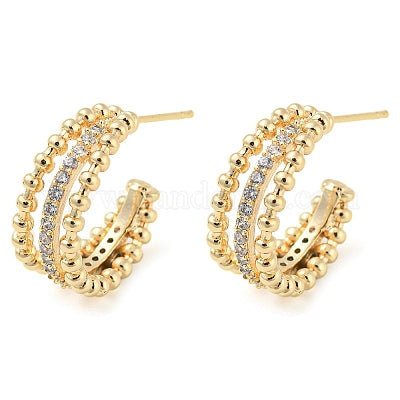 The Gold Beaded Rhinestone Huggie Earrings