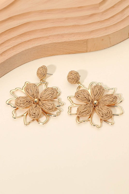 Raffia Wrapped Floral Petal Dangle Earrings