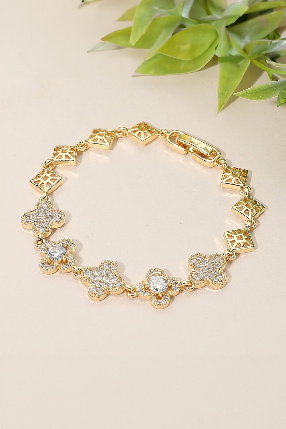 Paved Quatrefoil Link Bracelet