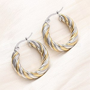 14K Gold Plated Two Tone Twisted Oval Earrings
