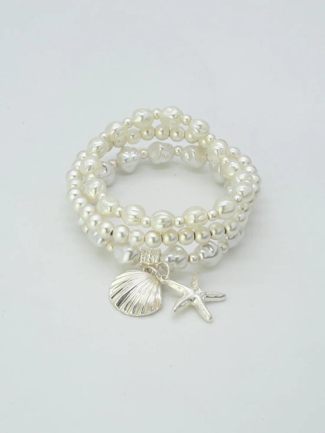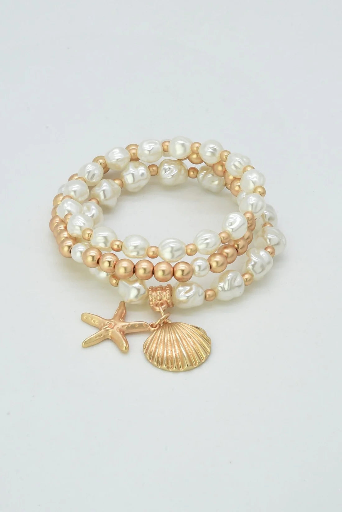 3 Piece Shell Starfish Sealife Charm Bracelet Set