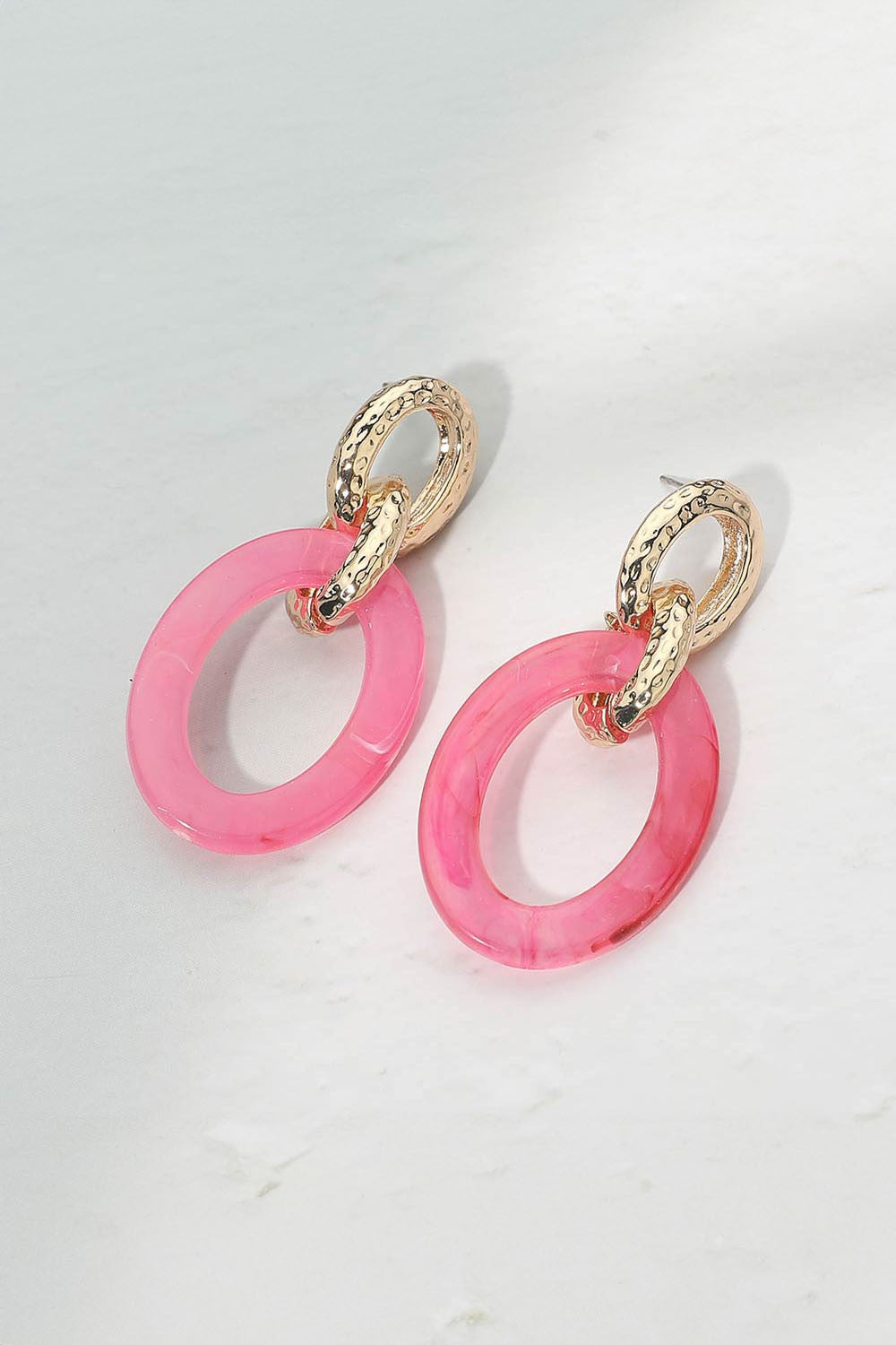 These eye-catching earrings combine contemporary design with timeless elegance. The marbled resin finish adds unique visual interest, while the linked oval and ring elements create beautiful movement and dimension that complements any look.