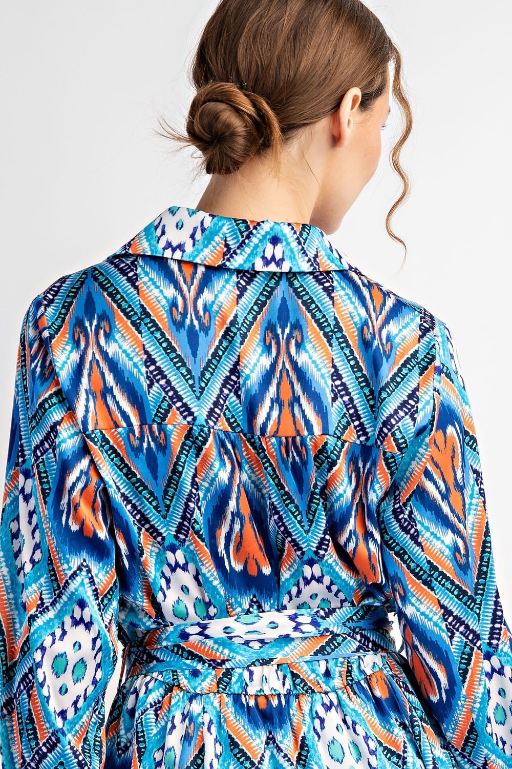 The Turquoise Tie Mini Dress combines playful abstract animal prints with timeless design. Featuring a button-down front, button cuffs, and a classic collared neckline, this dress balances style with comfort. Its adjustable tie waist flatters all figures, while the relaxed fit ensures effortless wear for any age or occasion.
