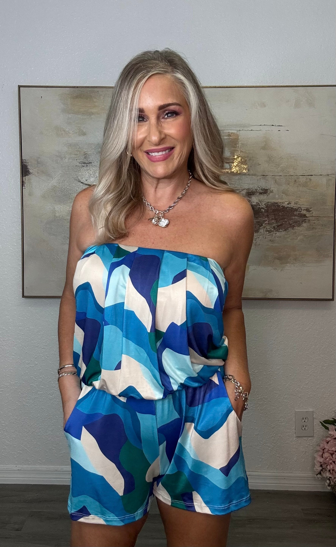 Chic and comfortable, this tube romper features a pleated tube top with elastic band for a secure, flattering fit. Designed with convenient waist pockets and crafted from buttery soft, stretchy fabric, this romper offers effortless style and all-day comfort.