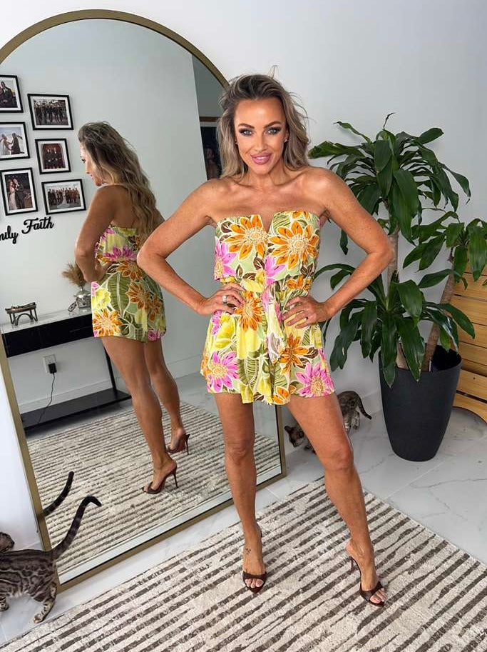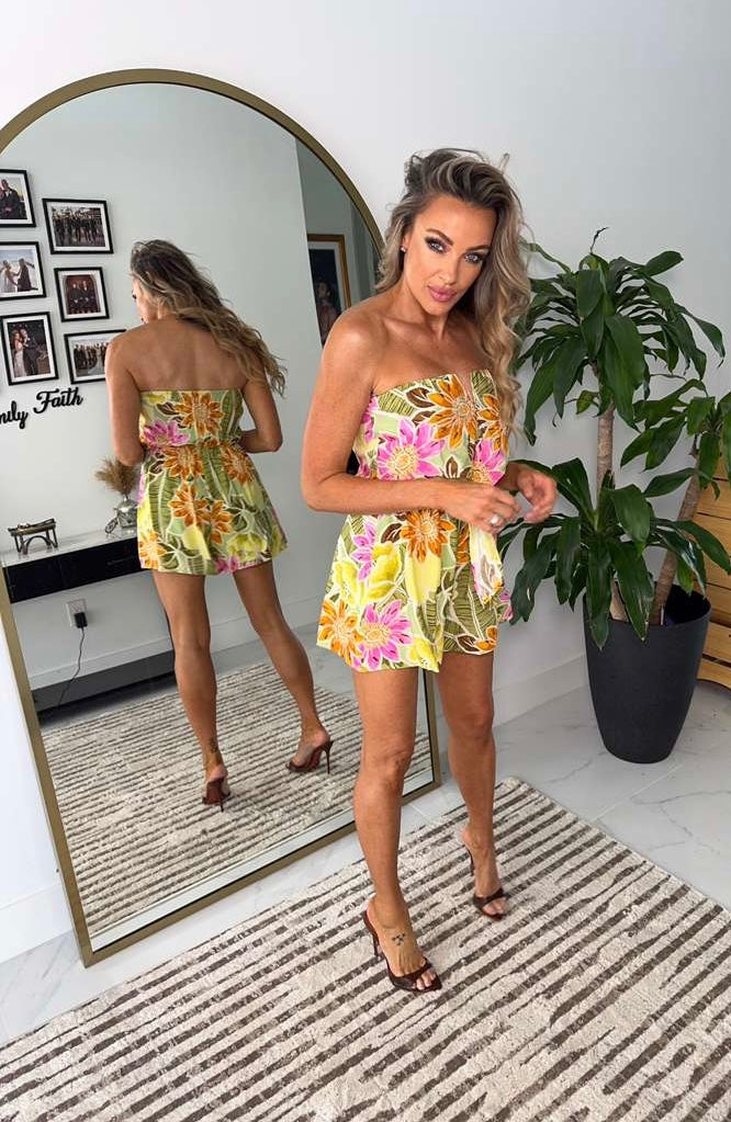V Trim Tube Top Tropical Romper