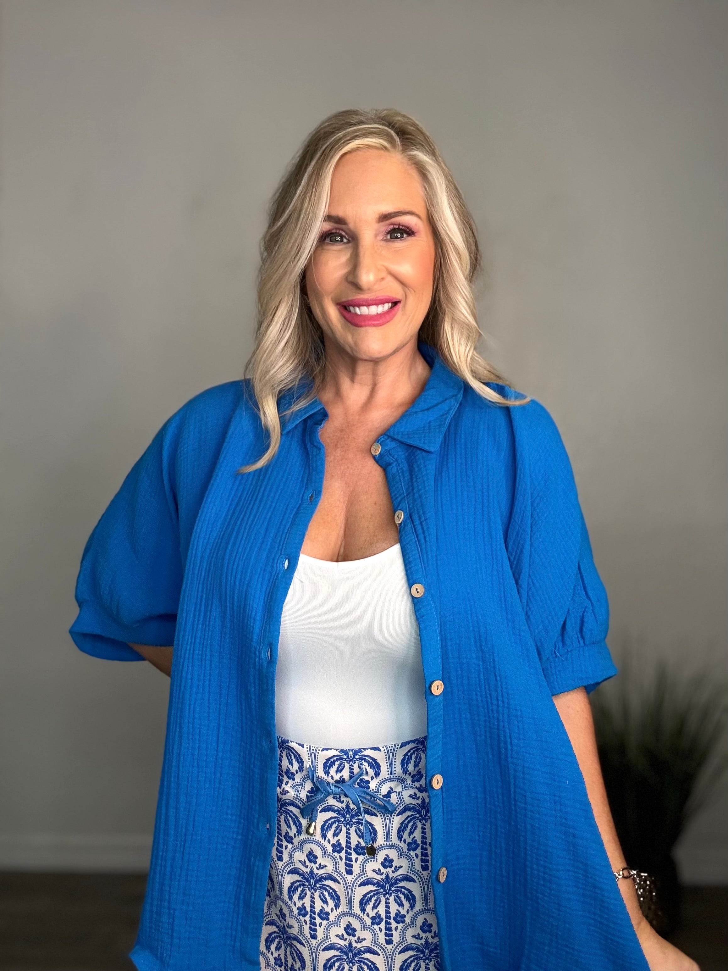 Double Gauze 3/4 Sleeve Button Up Top