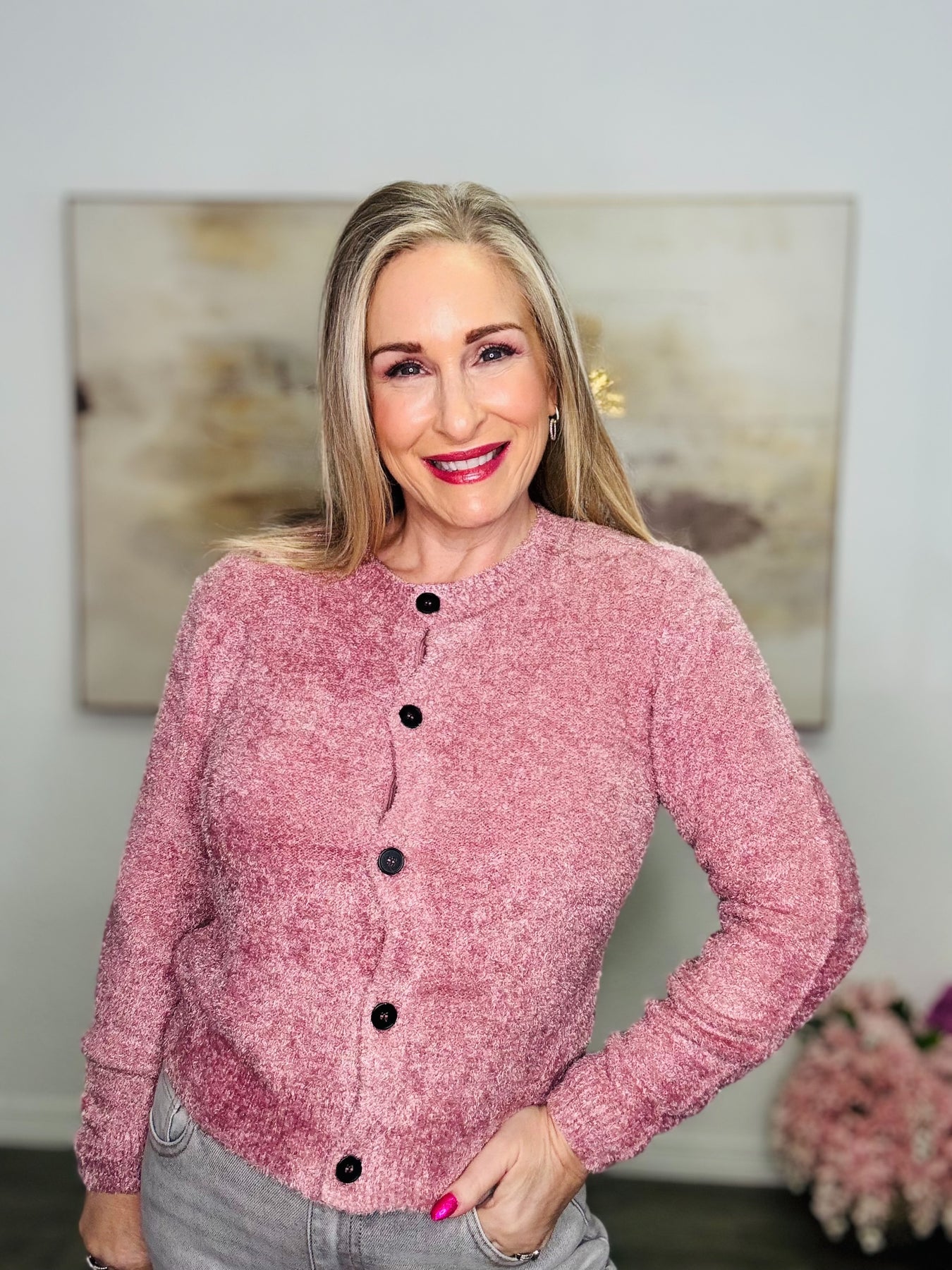 The Lovelee Button Down Fuzzy Soft Sweater
