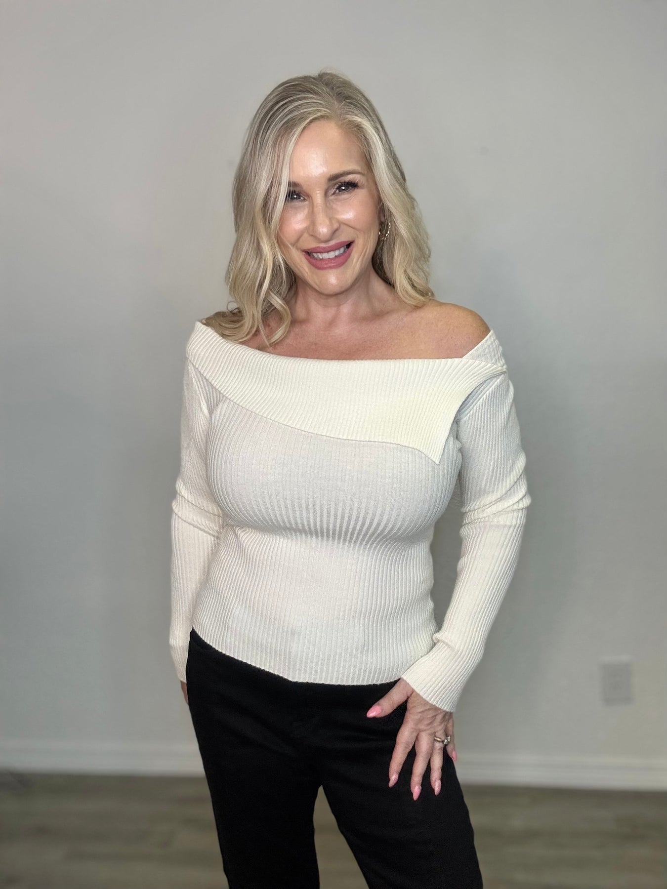 The Asymmetrical Fold Top features a striking asymmetrical neckline that adds a modern edge to your outfit. With long sleeves and a fitted silhouette, this solid-colored top offers both comfort and style. Perfect for elevating your everyday look or making a statement at any event, it’s a versatile addition to your wardrobe.