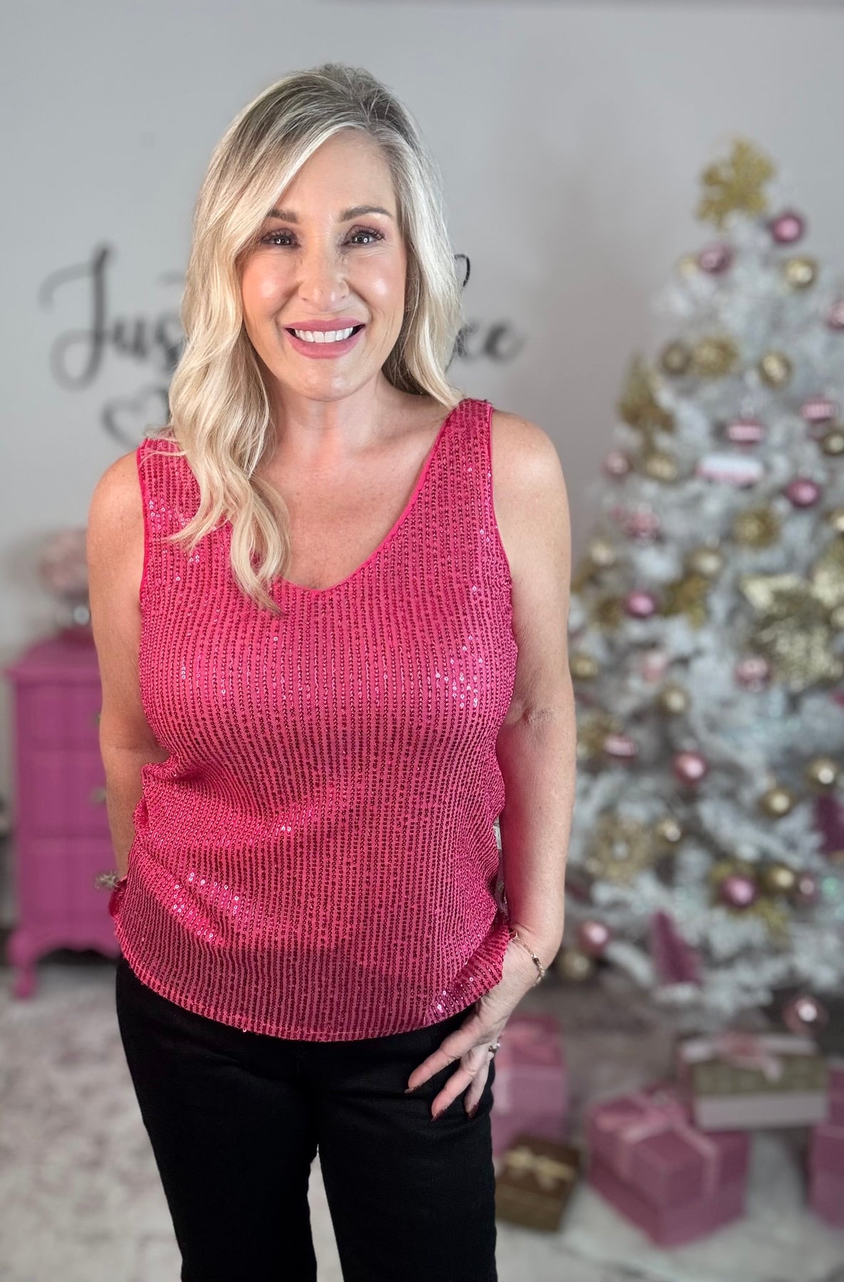 • V-neck sleeveless sequin tank top