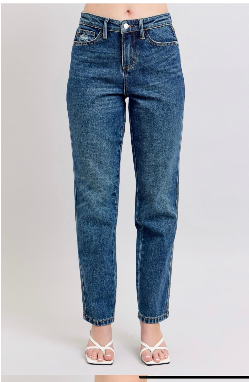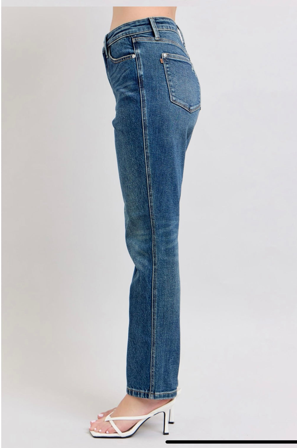 Experience the perfect blend of comfort and style with Judy Blue Rigid Magic Straight Jeans. These jeans offer a rigid yet stretchy fit that maintains its shape while providing all-day flexibility. Designed to flatter your figure with a straight cut, they deliver a sleek, polished look without sacrificing comfort. Ideal for any occasion, these jeans are your go-to for effortless, durable fashion that moves with you. Elevate your wardrobe with a pair that stays sharp wear after wear.